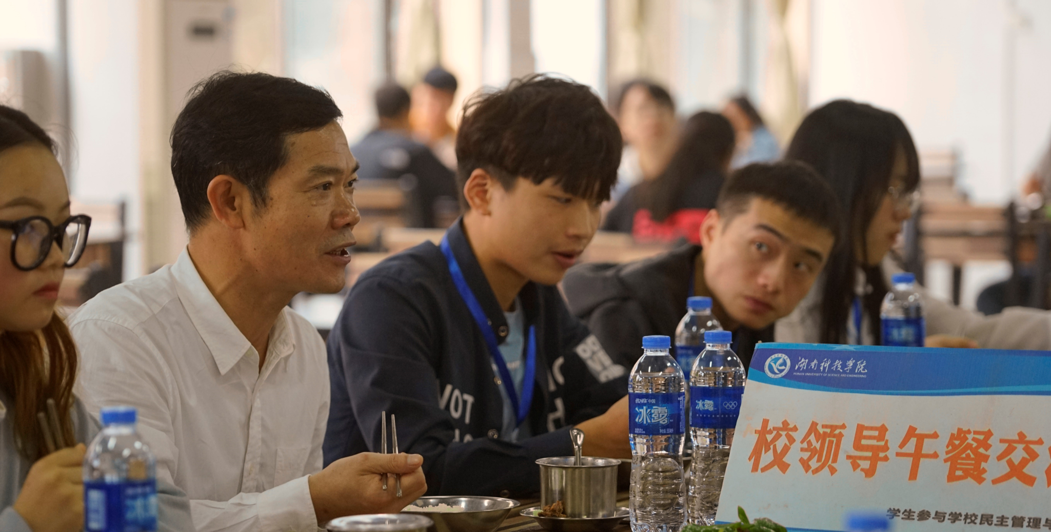 【校领导午餐交流会】副校长吴小林与学生畅聊节约“鼓励‘光盘’”(图)