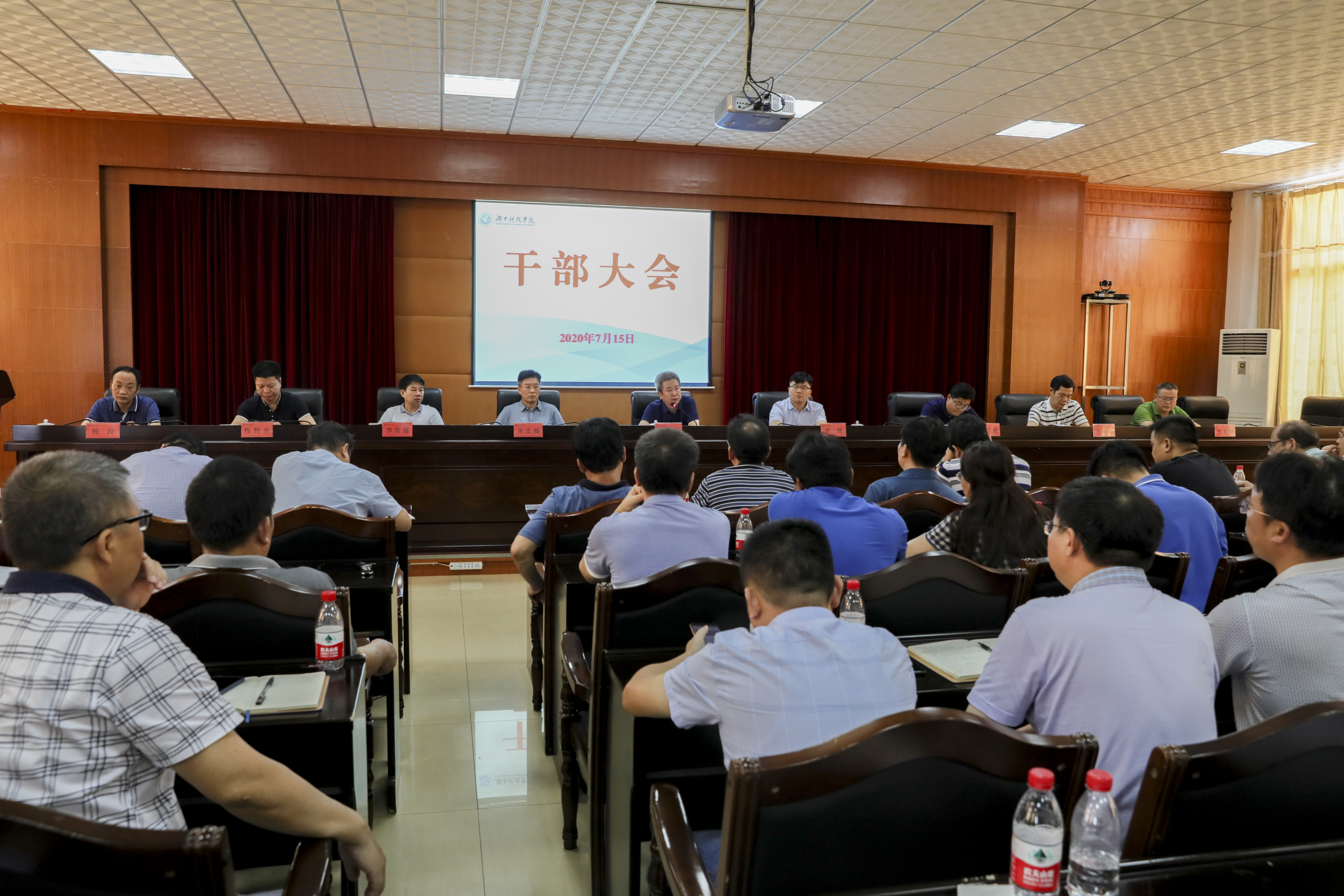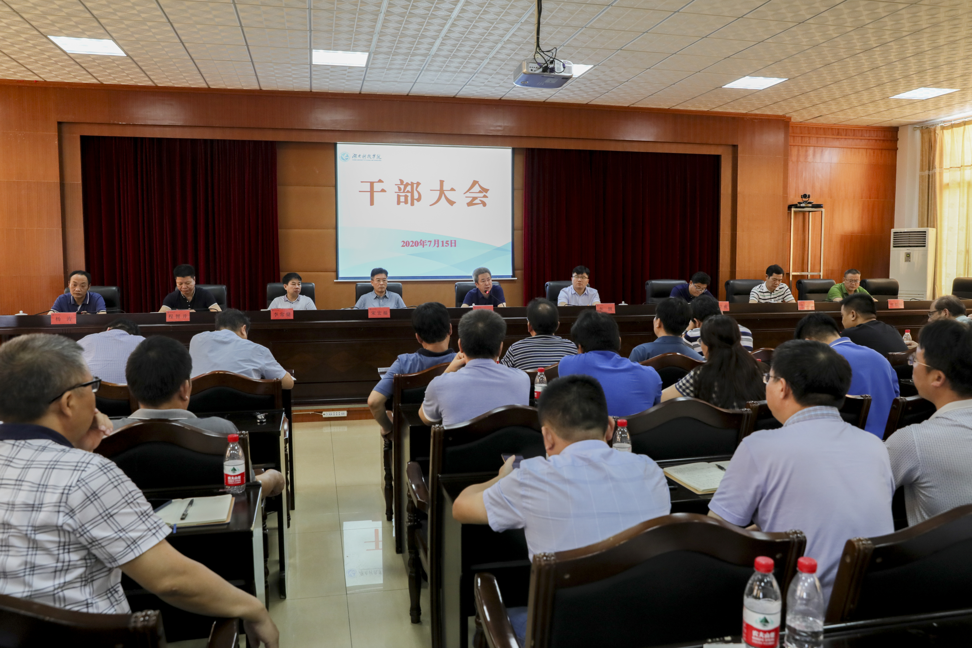 本网讯 7月15日上午,校党委书记曾宝成主持召开干部大会。校长李钢,校领导宋宏福、彭立威、李常健、吴小林、程智开,党委委员、组织部部长何福林,党委委员、宣传统战部部长杨涛出席会议。全体中层正职干部(含主持工作)与会。