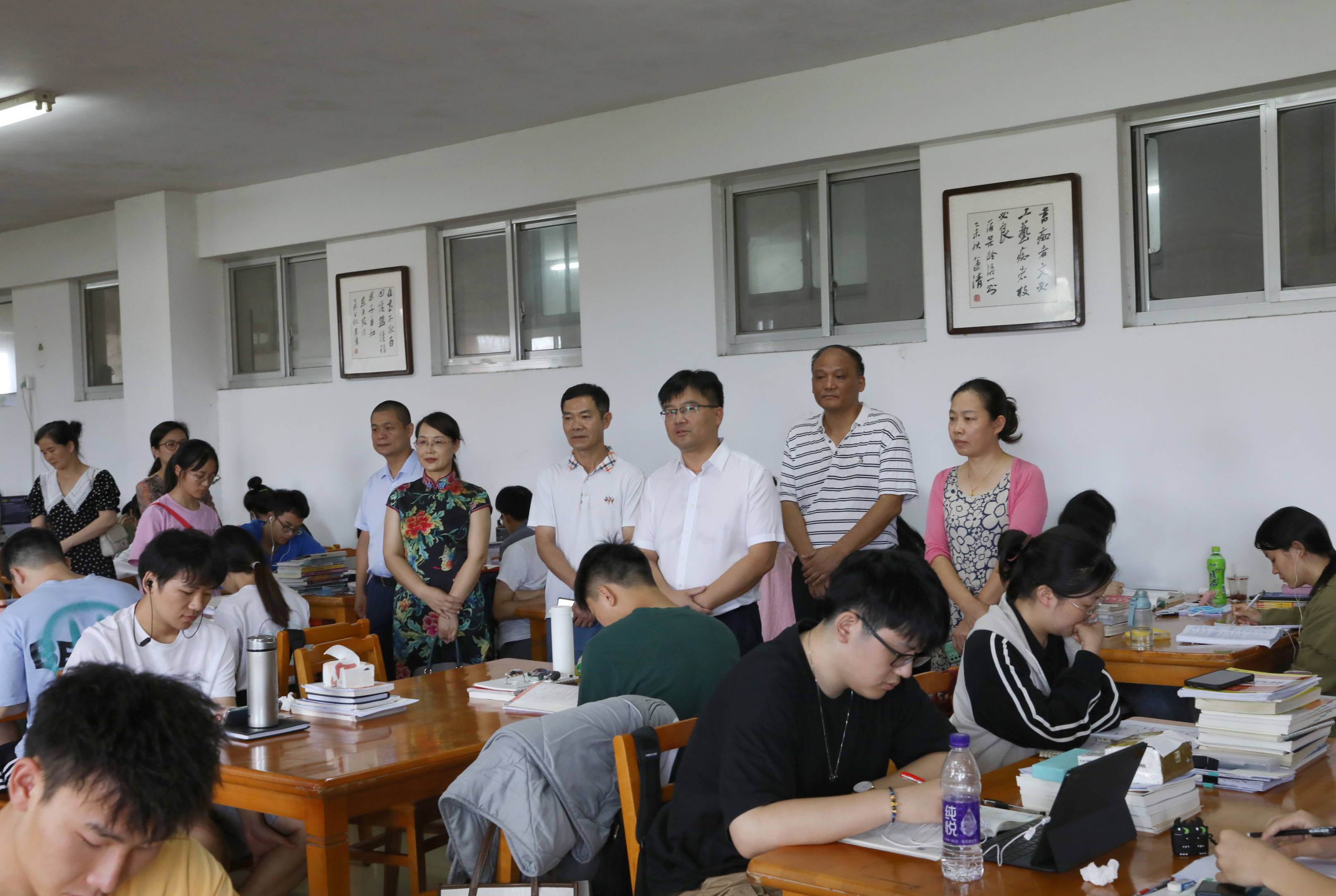 在招生录取室,校领导仔细询问今年招生录取工作的时间安排、前期招生宣传情况,认真了解今年vwin德赢在湘投档分数线、各专业的线上招录情况以及录取通知书的设计及寄送等情况。在图书馆,李钢勉励暑期留校的同学们要坚定信念,明确目标,注重方法,提高效率,保持良好心态,做到劳逸结合、张弛有度,同时他还叮嘱大家要注意饮食安全,防溺水,严格遵守学校疫情防控相关规定。在医务室,校领导看望慰问在岗一线医护人员,检查相关工作开展情况。在学校东门,校领导查看人员、车辆检查登记记录册。