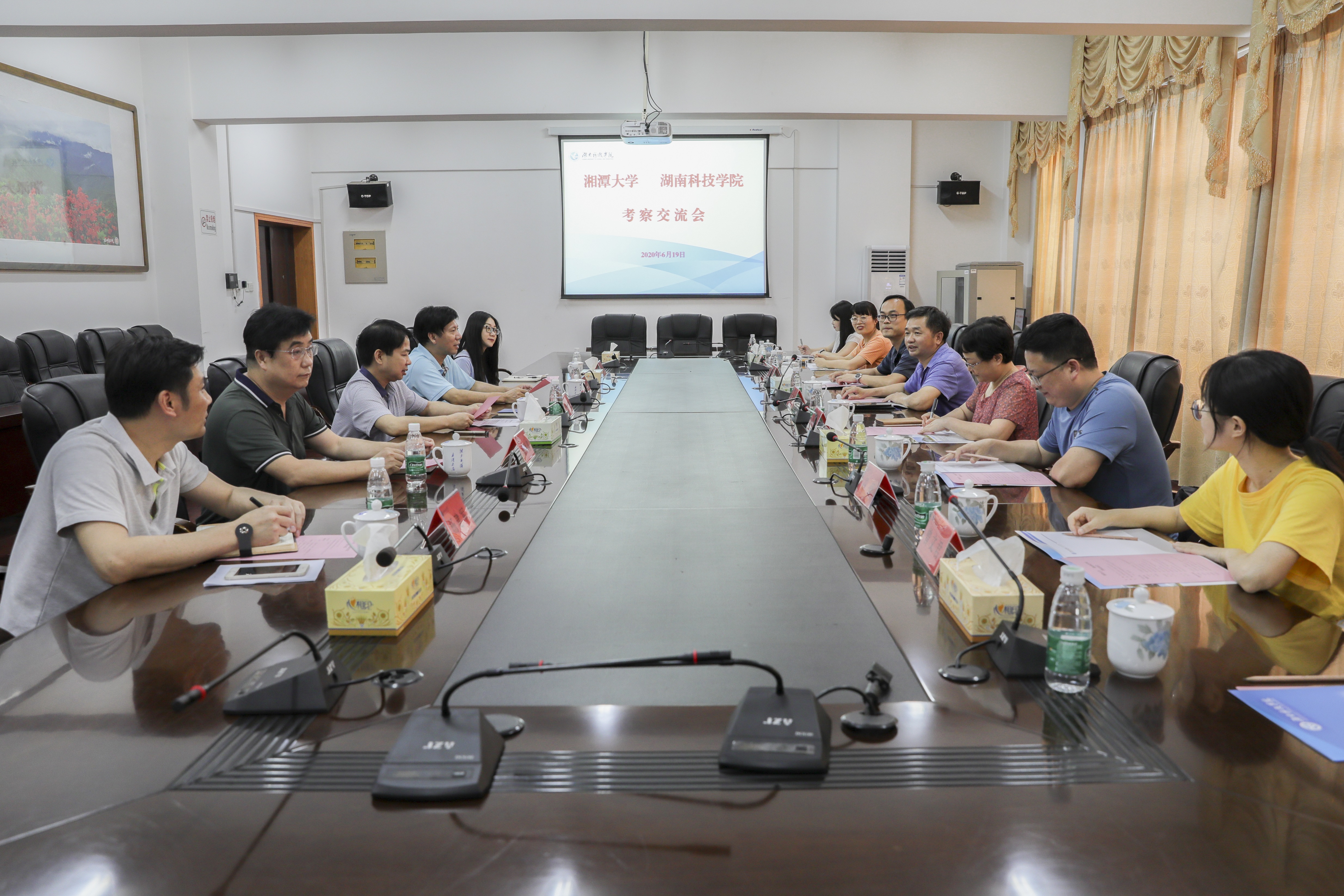 双方就师德师风建设、教师思想政治工作、本科教学质量监控与评估、教师教学能力提升等方面的相关做法与经验进行交流探讨。