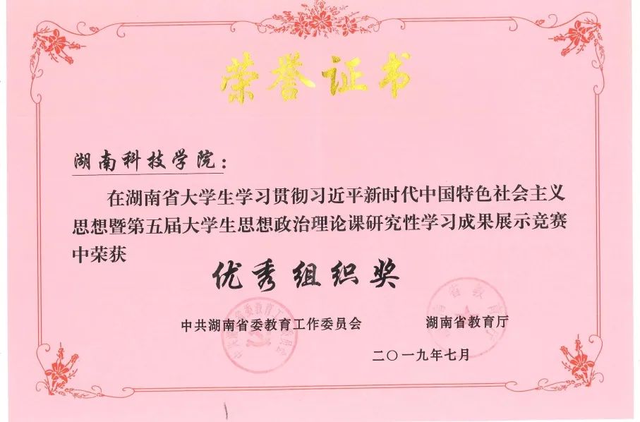 • 湖南省第五届大学生思课研究性学习成果展示竞赛优秀组织奖1项