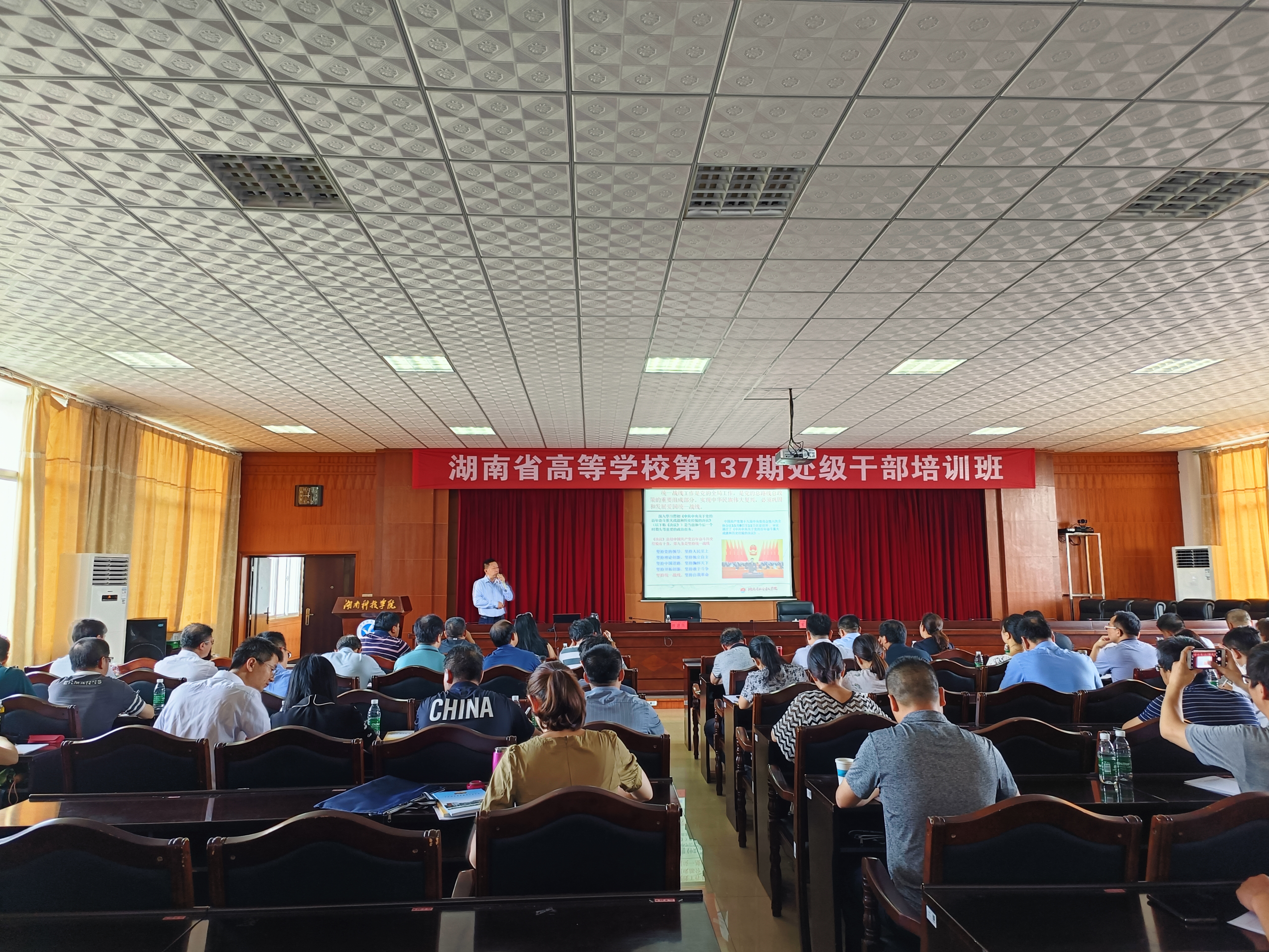本网讯 6月8日,湖南省高等学校第137期处级干部培训班第七、八次理论讲座开讲,省社会主义学院周述杰教授,永州市审计局二级巡视员、省委宣讲团永州分团成员王衡平为学员讲授了习近平总书记关于加强和改进统一战线的重要思想、做一个新时代被需要的人。