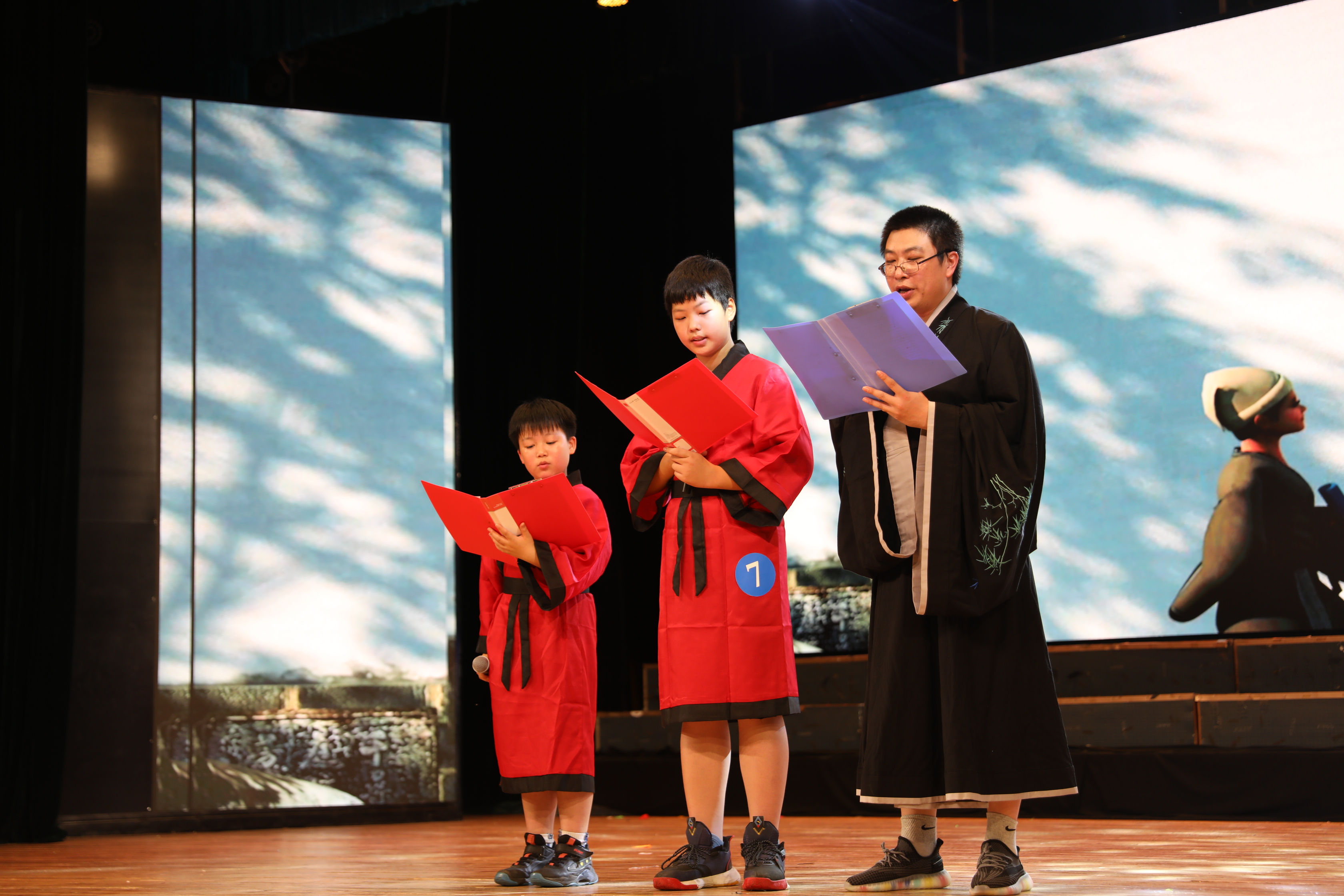 舞台上,小朋友们活泼可爱,家长们专注投入,配合得十分默契,一组组吟诵表演声情并茂、精彩纷呈,赢得观众和评委们的阵阵掌声。选手们携《家风诵》、《三字经》、《我爱你中国》等16个节目,为观众们带来了一场绝佳的“视听盛宴”。最终,经过现场吟诵和评委打分后,《我爱你中国》、《家风》、《六尺巷》三个节目以新颖的表演形式、强烈的感染力斩获一等奖。