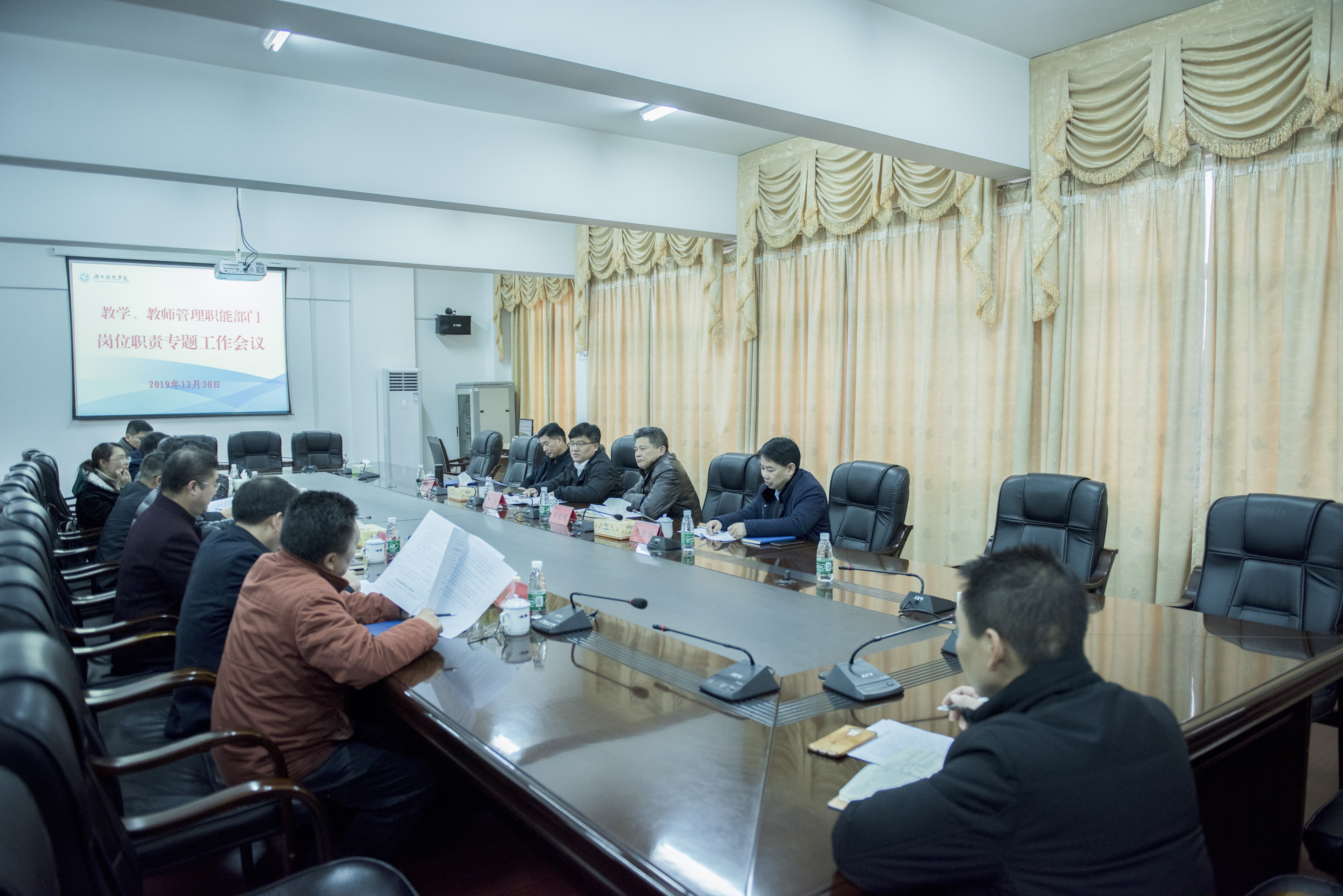 本网讯 12月30日下午,学校召开教学、教师管理相关职能部门岗位职责专题工作会议。校长李钢,校党委副书记唐艳明,副校长宋宏福、李常健及相关职能部门负责人等参加会议。会议由发展规划与学科建设处处长潘剑锋主持。