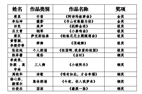 附:《湖南省第五届青年文化艺术节我师生校获奖名单》
