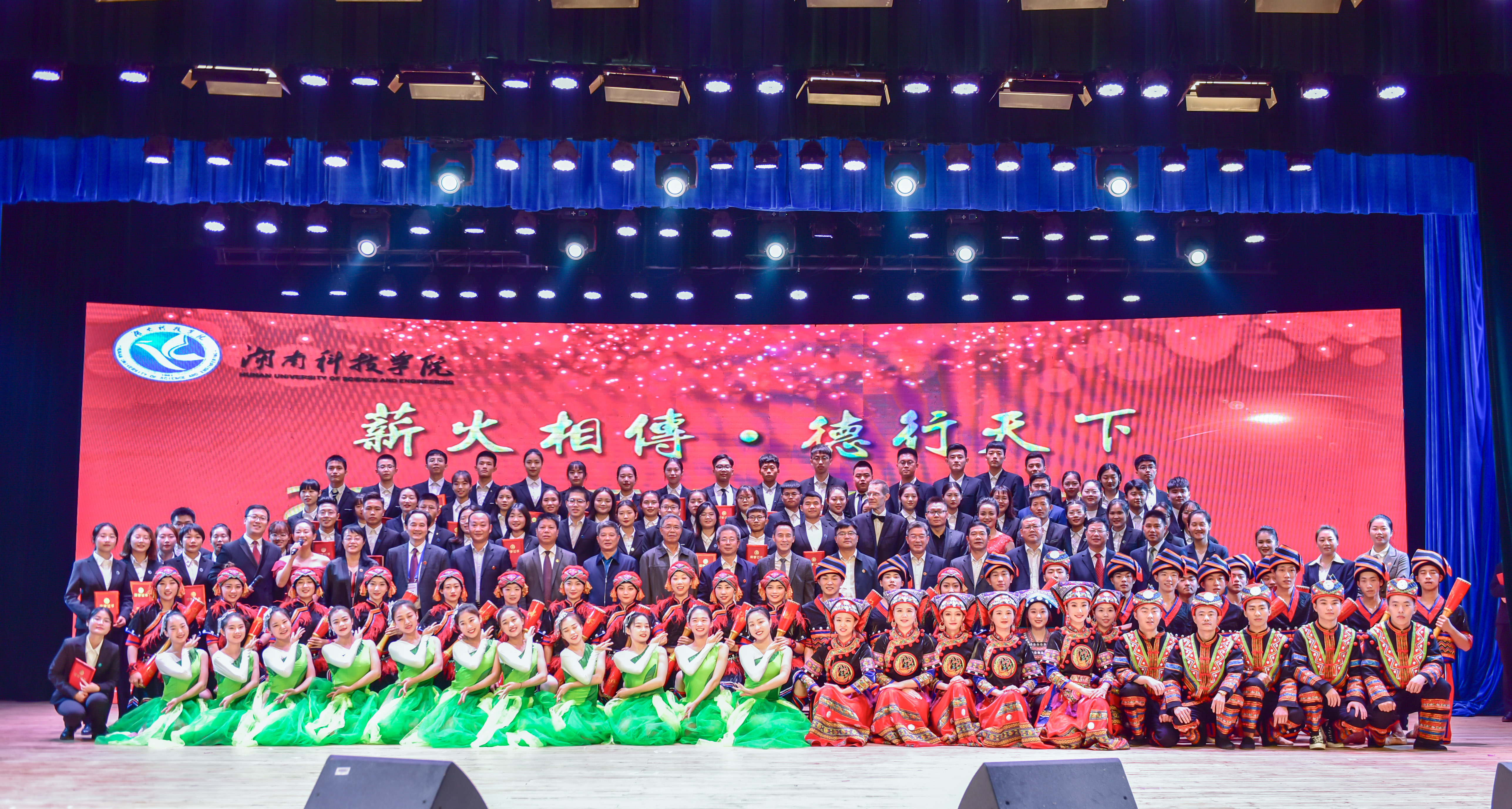 本网讯 七十八年春风化雨,七十八年立德树人。11月12日晚,正值学校建校78周年纪念日,学校举行“薪火相传·德行天下-vwin德赢ac米兰官方网2019年舜德学子颁奖典礼”,100名优秀学子获表彰。本科教学工作审核评估专家广西师范大学原副校长钟瑞添、武汉音乐学院学科建设与规划办公室主任陈明,党委书记曾宝成,校长李钢,校领导唐艳明、宋宏福、彭立威、吴小林、程智开,党委委员、组织部长何福林,党委委员、宣传统战部长杨涛等参加颁奖典礼,并与学校师生共同观看表彰晚会。