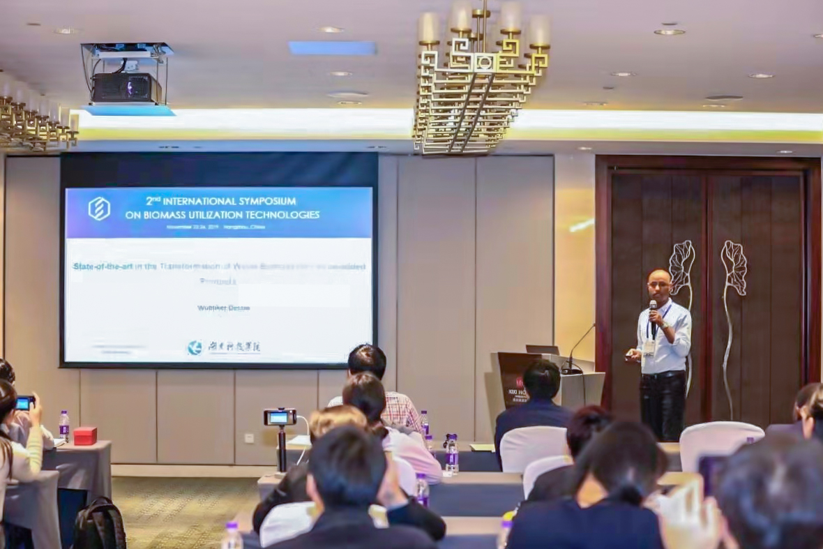本网讯 2019年11月22日至24日,第二届生物质综合利用国际大会在杭州召开,vwin德赢生物化工团队外籍博士Wubliker Dessie Lemma与廖云辉博士应邀参会,Wubliker博士做了关于“State-of-the-art in the Transformation of Waste Biomass into Value-added Products”的分会场报告,受到与会专家好评。