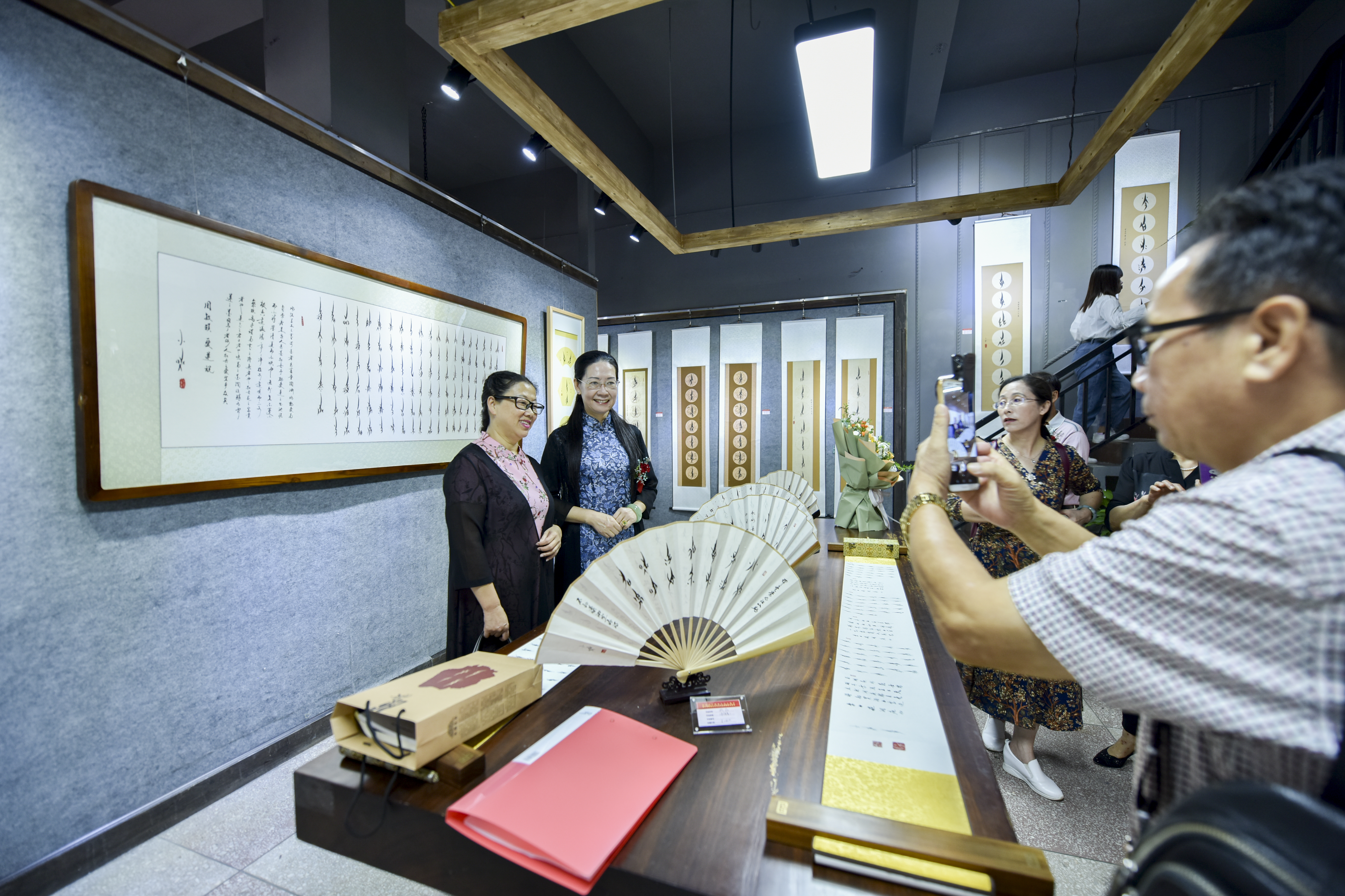 欧小松说:“女书是中国的非物质文化遗产,传承女书是一件非常有意义的事。这场女书书法作品展,是为了表达我对祖国的崇敬。”