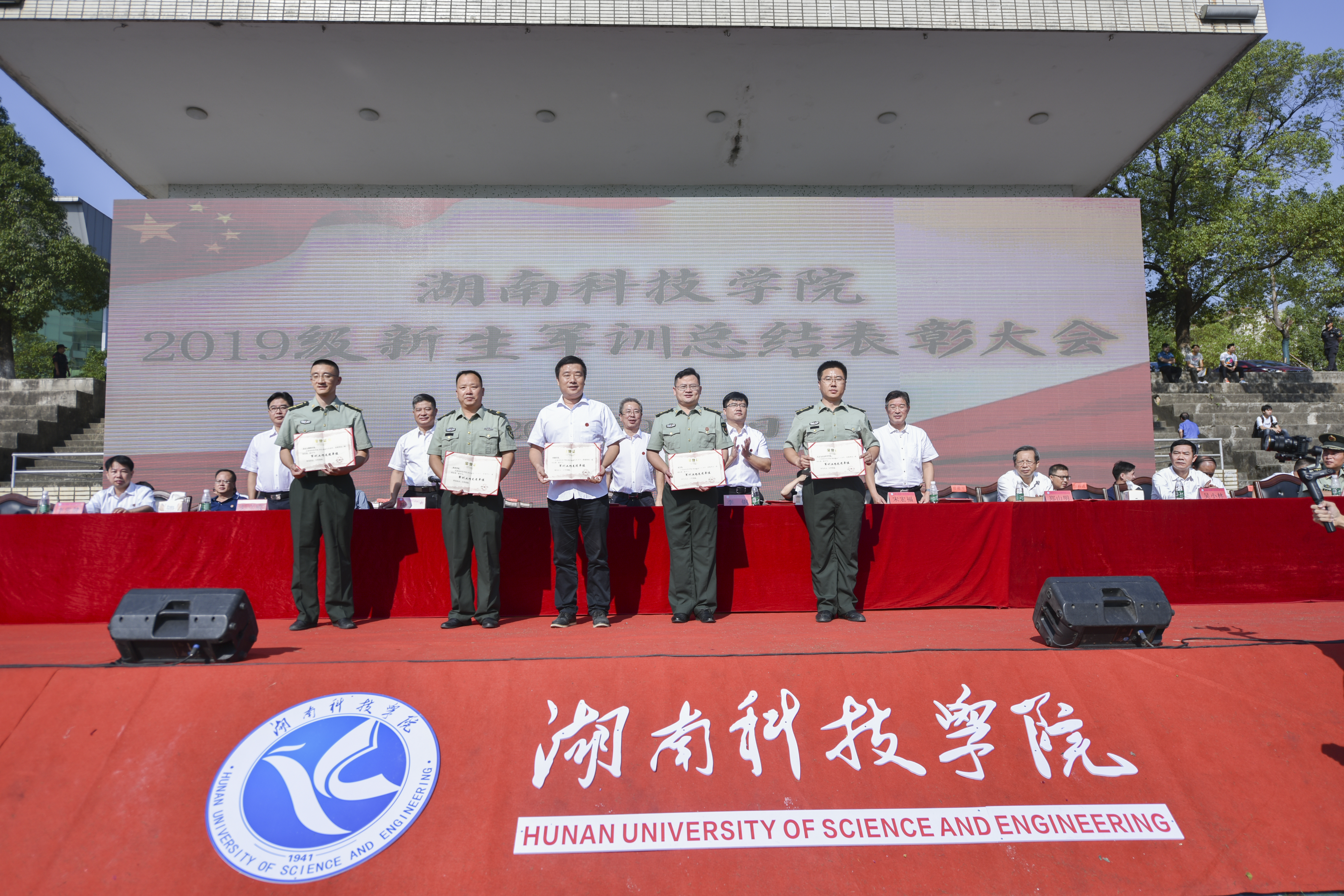 李钢宣读军训表彰文件,对音乐与舞蹈学院等5个军训工作先进单位、音乐与舞蹈学院二营二连等25个优秀连队、蒋志平等30名教官以及桃园宿舍桃三A505等70间寝室进行表彰。校领导为优秀的单位和个人颁奖。