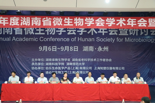 本网讯 9月7日上午,2019年度湖南省微生物学会学术年会暨研讨会在vwin德赢召开,来自全国200多名微生物学领域专家学者参加。校党委书记曾宝成、湖南省科学技术协会学会部副部长余佳桂、湖南省微生物学会理事长夏立秋教授参加开幕式。开幕式由副校长宋宏福主持。