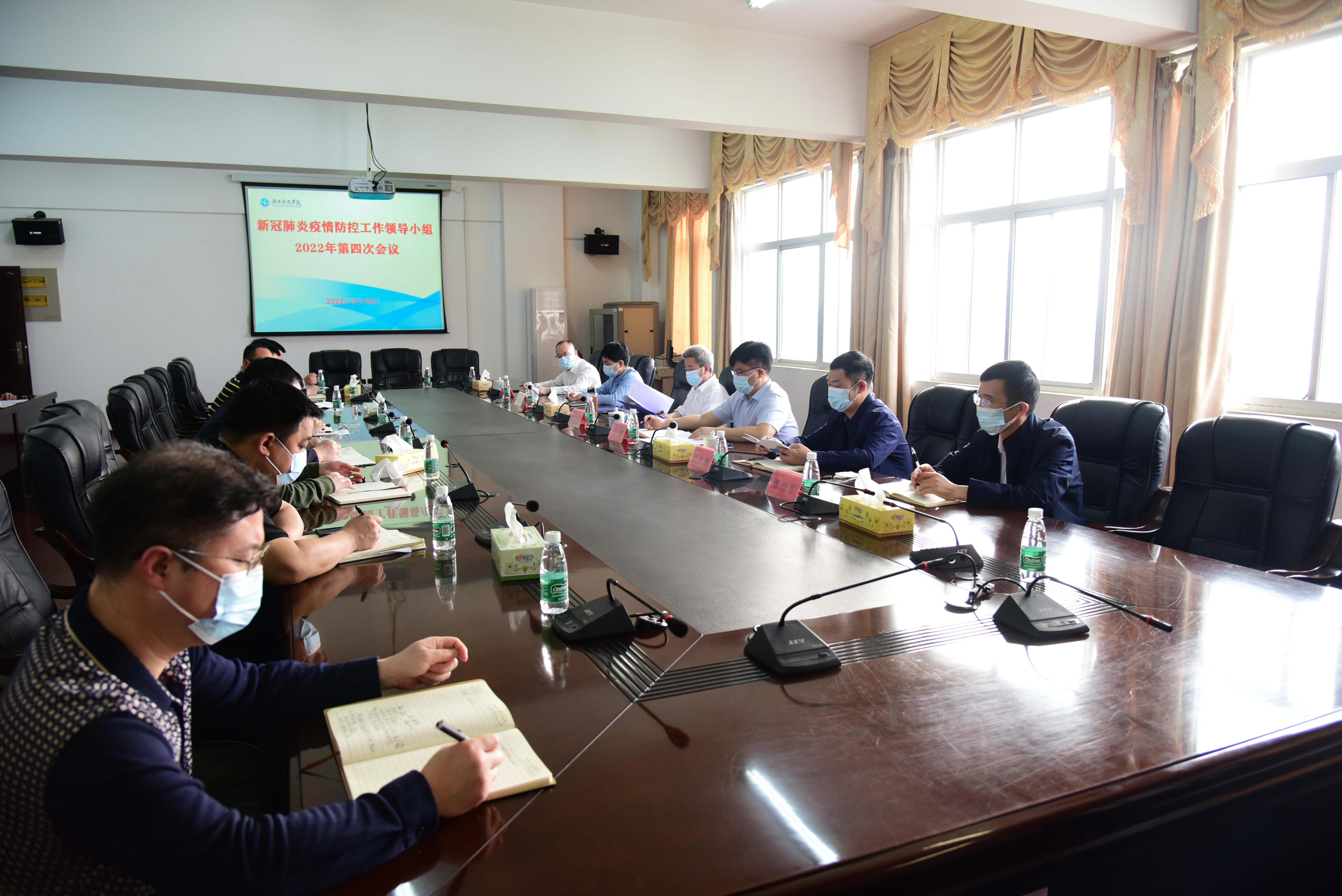 3月15日上午,学校召开新冠肺炎疫情防控工作领导小组2022年第四次会议,再次学习传达教育部、教育厅关于疫情防控的相关文件精神,对疫情防控工作再强调、再部署。党委书记曾宝成,校长李钢,校领导李常健、吴小林、陈灿军、何海,党委委员、组织部长杨涛参加会议。