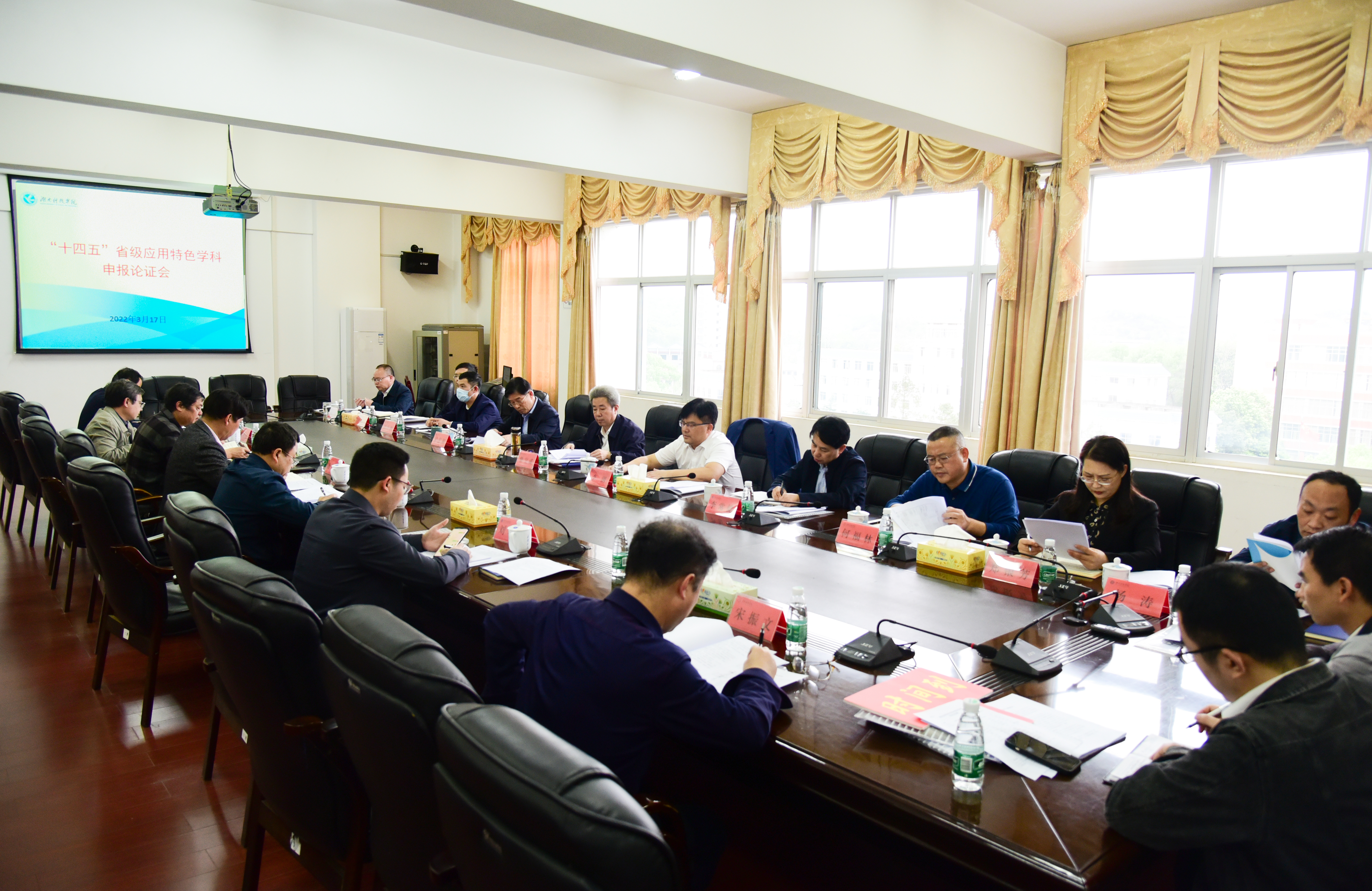 在上午的汇报会中,教学学院院长们围绕本学科现有发展现状及优势、本学科在全省范围内横向对比分析、本学科存在的主要不足及其需要学校重点解决的问题进行了汇报。下午,与会专家和领导集中开展了评议。