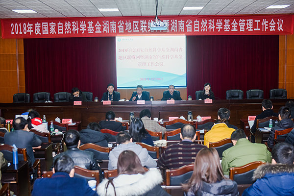 本网讯 12月28日上午,2018年度国家自然科学基金湖南省地区联络网暨湖南省自然科学基金管理工作会议在学校召开。校党委书记、校长曾宝成,副校长宋宏福,省自然科学基金委员会主任任树言,省自然科学基金委员会副调研员蔡进莲,省自然科学基金委员会组长单位中南大学欧阳俊博士及国家自然科学基金依托单位的基金管理负责人参加会议,会议由蔡进莲主持。