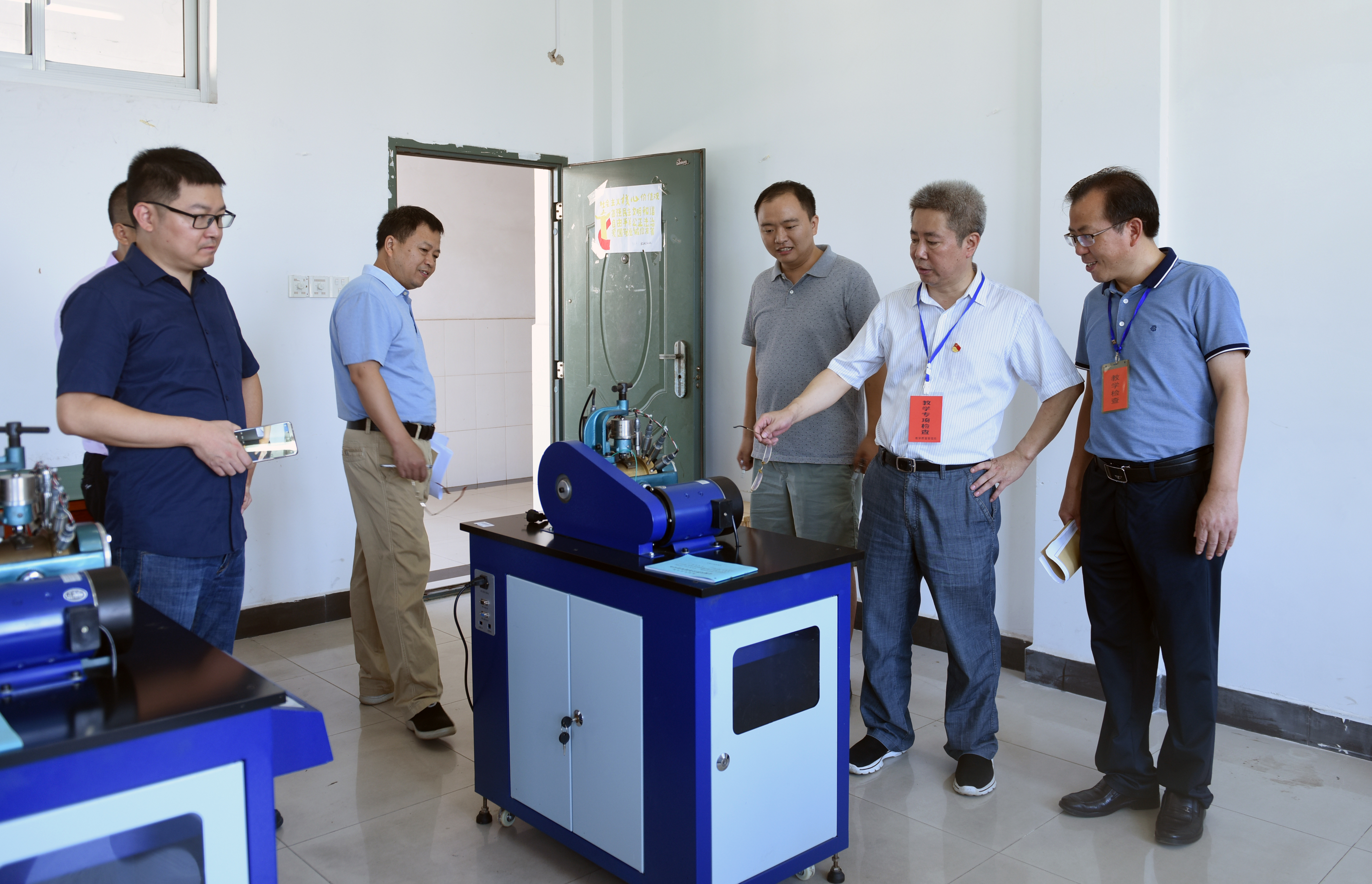 在知行楼和致远楼,曾宝成检查了教师到岗、学生出勤、教材发放、教学设备运行以及教学楼环境卫生等情况,随机走进课堂听课,了解学生课堂学习和教师课堂教学情况。
