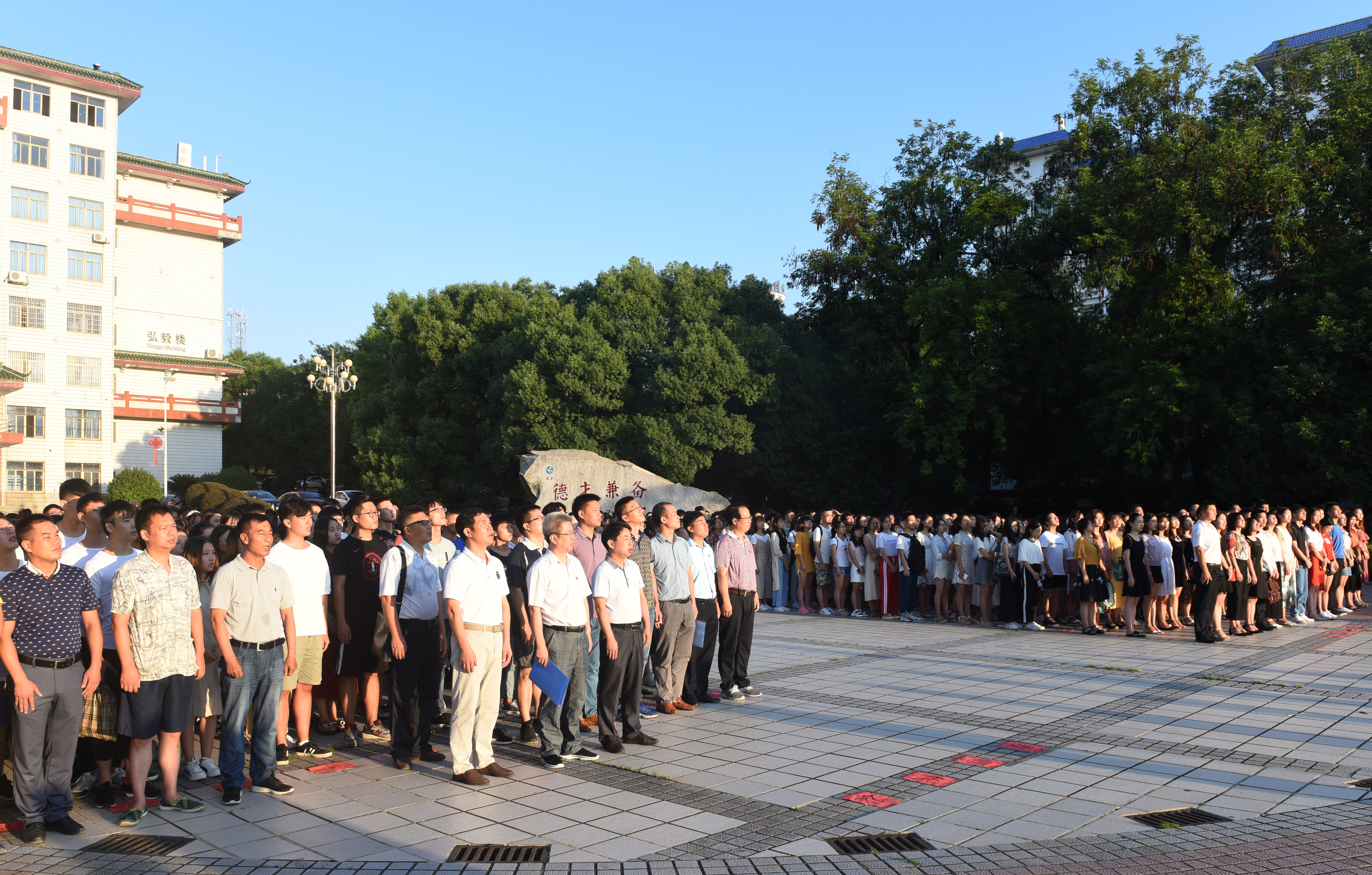 本网讯 9月3日,vwin德赢千余名师生相聚文化广场,举行新学期升国旗仪式。党委副书记、校长曾宝成及在校领导,各教学学院党总支书记、副书记,辅导员和学生代表参加。