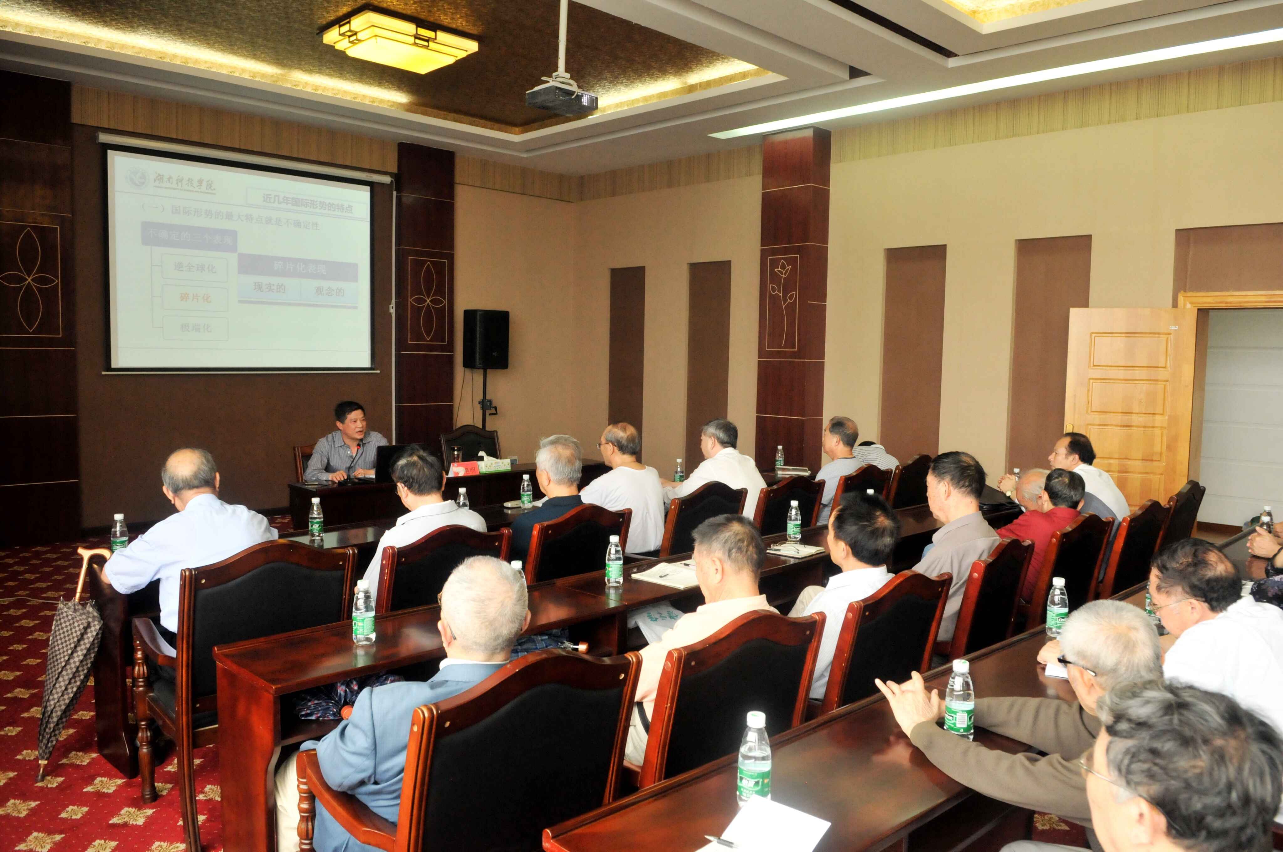 本网讯 为深入学习贯彻习近平新时代中国特色社会主义思想和十九大精神,6月6日下午,党委副书记唐艳明以“当前国际形势的特点和十九大以后的中国外交关系”为题,为vwin德赢离退休同志作形势辅导报告。报告会由离退休工作处处长刘剑非主持,50余名离退休同志参加会议。