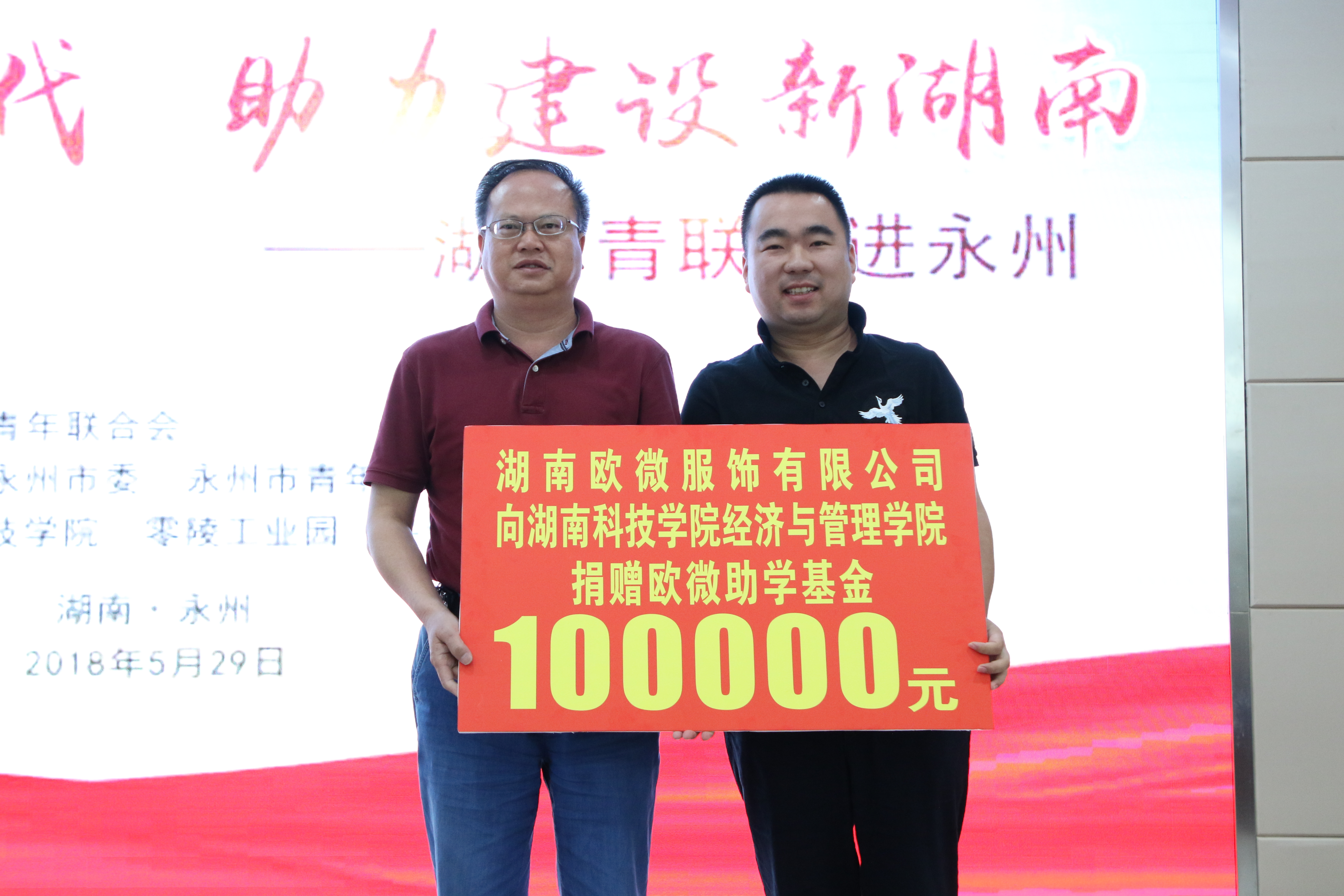 宣讲结束后,李玉龙向vwin德赢经济与管理学院“欧微助学基金”捐款10万元,用于资助该院贫困学子。
