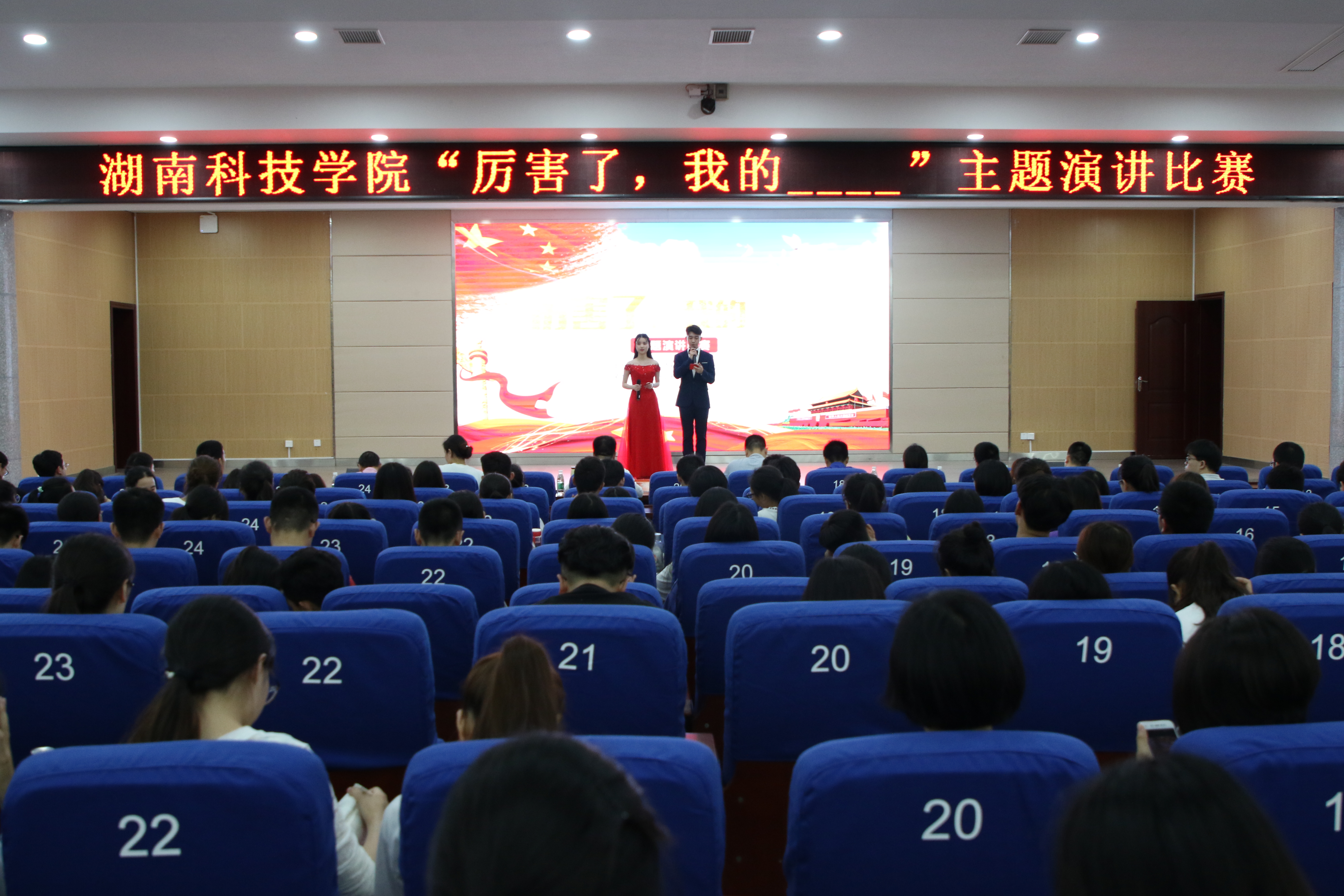 本网讯 5月14日晚,由校团委主办、人文与社会科学学院承办的“厉害了,____”主题演讲比赛在潇湘大讲堂举行。副校长程智开观看比赛。