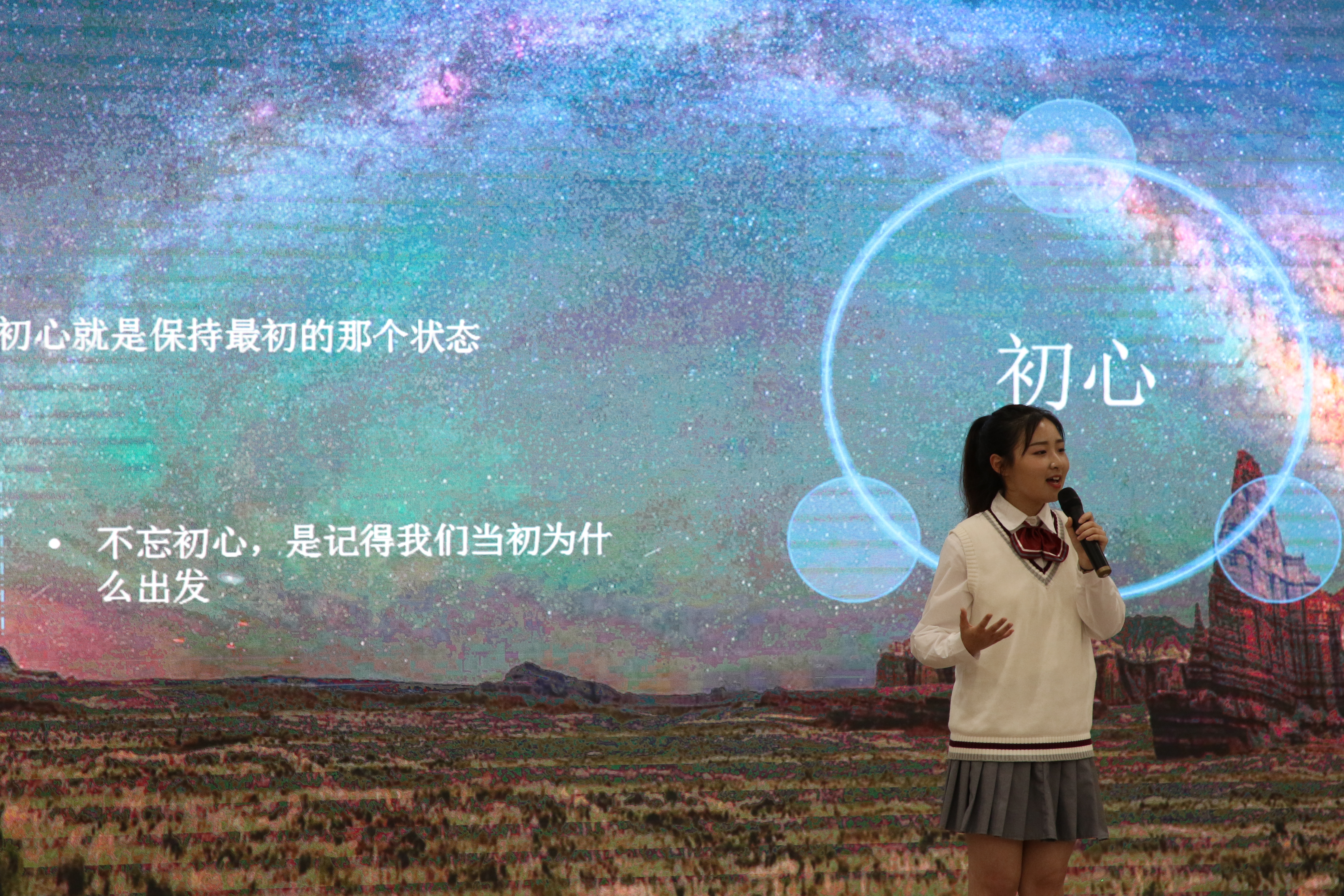 8名参赛选手精心准备,紧绕主题,以感情真挚、语言精炼、声情并茂的演讲,在舞台上尽显青春风采。选手们或慷慨激昂,或低沉颂吟,以热血颂扬祖国、以真情感恩家人,倾诉着对祖国、对家庭的感激与热爱之情。其中,7号选手彭超的《厉害了,我的唐诗》,用饱含深情的语调,抒发了对唐诗的挚爱与赞美之情;6号选手雷盈的《厉害了,我的猎户星座》,准确地把握“不忘初心”四个字的深切含义,问出了同学们的心声,迸发了青年人的朝气蓬勃;8号选手靳慕雪的《厉害了,我的中国电影》,抒发了坚定文化自信的豪情。比赛激情洋溢,选手们凭借精彩的表现,引发全场共鸣,博得了阵阵掌声。