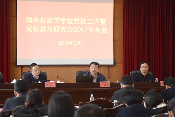 本网讯 3月22日,湖南省高等学校党校工作暨党校教育研究会2017年年会在校召开。省委教育工委副书记、党校校长王建华,省委教育工委组织部部长雷桂平,省高校干部培训中心主任、书记,省委教育工委党校常务副校长刘国华,校党委书记陈弘,纪委书记彭立威出席会议。
