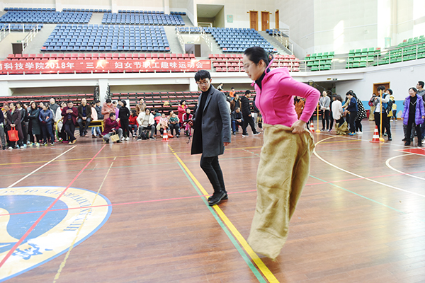 本网讯 3月8日下午,学校体育馆内笑声连连,欢呼阵阵,趣味横生,“三八”妇女节趣味运动会欢乐举行,吸引了来自全校各单位的300余名教职工参加,不少男教职工也纷纷热情参与助阵。