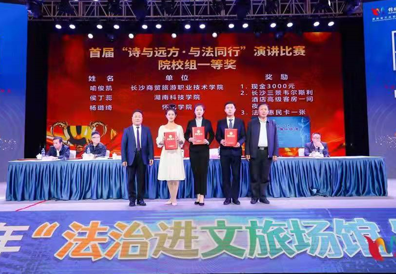 本网讯 12月17日,由湖南省文化和旅游厅、湖南省司法厅主办的首届“诗与远方·与法同行”主题演讲比赛在株洲举行。比赛通过立足文旅视角,感悟法治力量的演讲舞台,引领文旅行业从业者以及广大青年学子学法、懂法、用法。