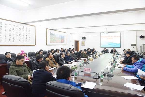 本网讯 1月16日晚,学校召开2016-2017年度重点学科建设总结会议,并公布了17个“十三五”校级重点(建设、培育)学科检查结果。校长曾宝成出席。会议由发展规划与学科建设处副处长谭永宏主持。