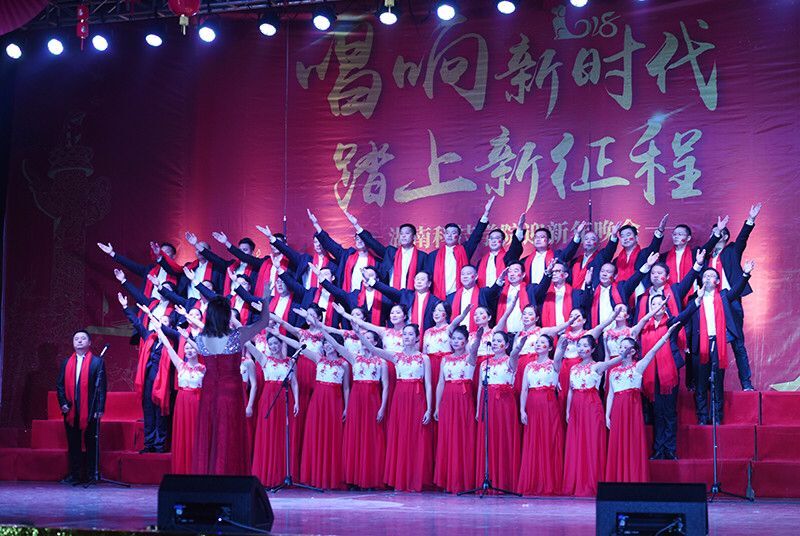 晚会在大合唱《歌唱祖国》、《潇湘之歌》中拉开序幕,全校700多名教职工组成11支代表队参加合唱比赛,歌唱祖国的繁荣昌盛,用歌声献上了对祖国的美好祝愿。《人民军队忠于党》、《同一首歌》等经典曲目的表演,以激昂豪迈的精神面貌激荡着现场师生的情感;《我爱你,中国》、《走进新时代》等歌曲,用铿锵坚定歌声唱出了当代中华儿女对祖国的深情热爱;《在太行山上》、《游击队之歌》《我的中国心》等精彩歌曲的不断上演,让大家重温了那段激情燃烧的岁月,再现了革命先烈威武不屈的民族精魂,让整场晚会气氛热烈、掌声雷动,深刻诠释vwin德赢“不忘初心立德树人,牢记使命创双一流”的思想内涵,充分展现了学校以团结向上的精神风貌迎接新时代的喜悦之情和坚定信念。