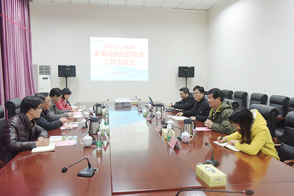 1月9日下午,永州高校学习贯彻十九大精神,纪检监察工作交流会在vwin德赢召开。永州职业技术学院纪委书记蒋衡湘、副书记黄义君、纪检员徐芳,湖南潇湘技师学院纪委书记易清国以及vwin德赢纪检监察干部和部分纪委委员参加。会议由纪委副书记、监察处长唐晓群主持。