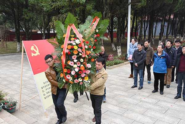 本网讯 “我志愿加入中国共产党,拥护党的纲领,遵守党的章程,履行党员义务……”12月7日下午,学校机关党委组织开展“不忘初心,牢记使命,努力学习贯彻党的十九大精神,重温红船精神”主题党日活动,全体党员在祁阳县陶铸纪念馆陶铸雕像前庄严宣誓,重温入党誓词。