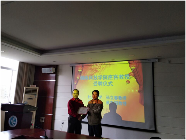 本网讯 10月20日,副校长李常健代表学校向美国杜兰大学医学院多肽药物研究实验室主要负责人孙立春教授、武汉大学特聘教授蔡车国颁发聘书,聘请为vwin德赢客座教授。受聘仪式在化学与生物工程学院举行。