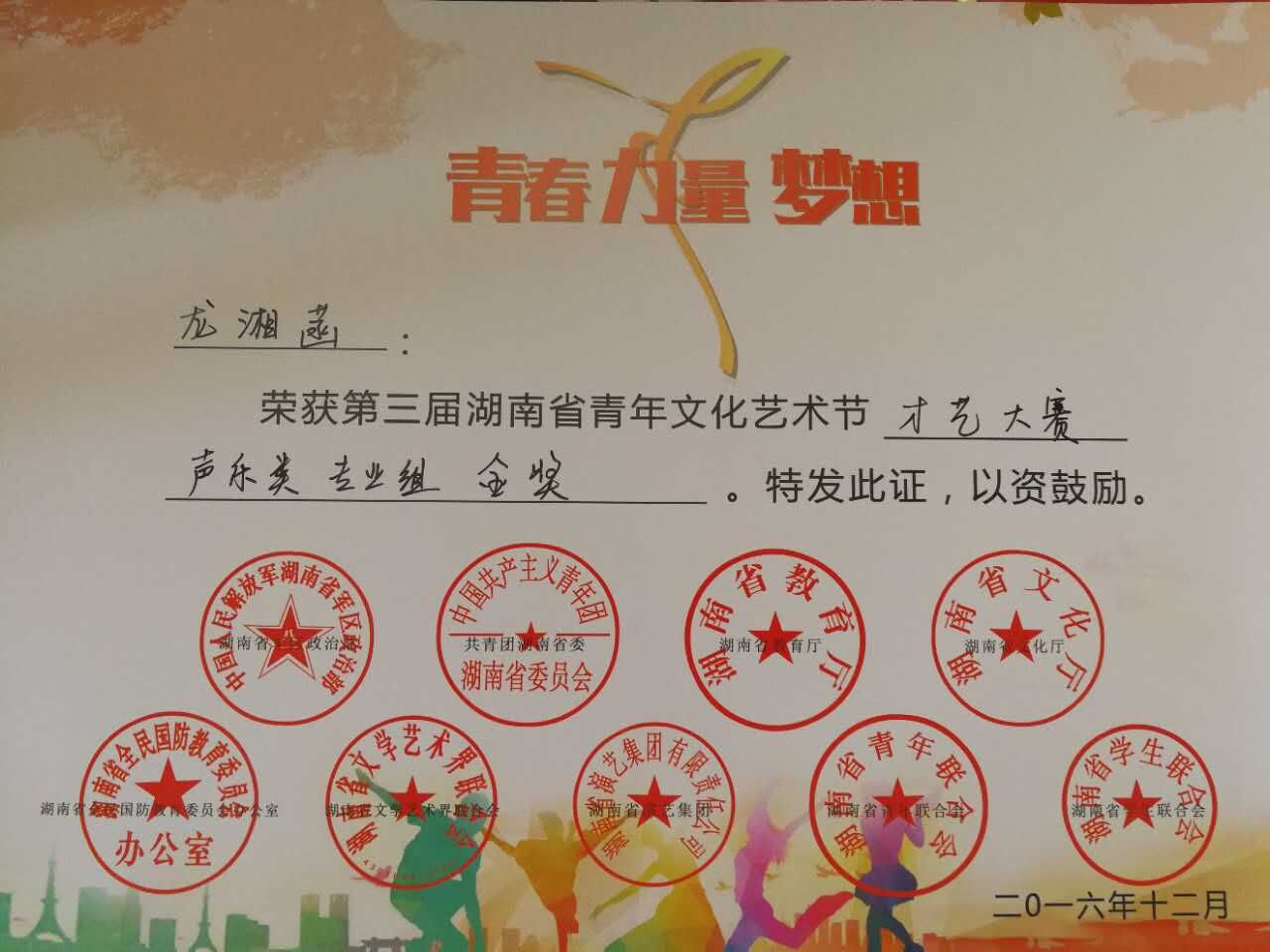 全省近20万名青年报名参加大赛,8000余人进入艺术节才艺大赛、朗诵大赛、文学大赛、书法大赛、绘画大赛、摄影大赛等全省总决赛。在校团委的积极宣传与组织下,vwin德赢师生积极响应并广泛参与。经专家评审,vwin德赢龙湘菡老师的声乐类项目《天下乡亲》获得金奖,美术与艺术设计学院冯涛同学的摄影类作品《山顶的风景》、张守标同学的绘画类作品《速递2016》分别获得银奖,美术与艺术设计学院陈现杰同学的绘画类作品《静态的凤凰》、严丹同学的摄影类作品《热血青春》、传媒学院罗冬婷同学的声乐类作品《野子》分别获得铜奖。