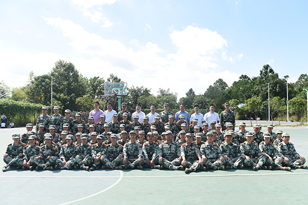 陈弘还来到了北区篮球场,看望正在接受训练的同学们,他与学院学工负责人了解了同学们关于军训的感受、对新环境的适应等情况,鼓励同学们继续发扬拼搏精神,顺利完成军训各项任务。