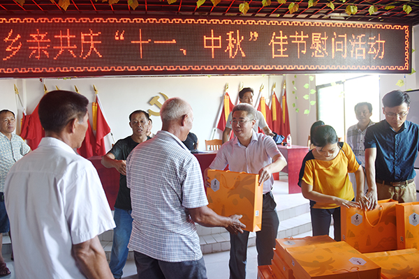 中秋节即将来临,曾宝成一行来到村里,为103户村民送去月饼,并向大家致以中秋佳节的美好祝福。