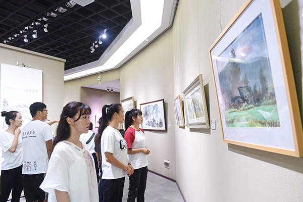 美术与艺术学院的刘天一同学一边观展一边交流请教,“能够近距离看到这些大家之作,感觉太震撼了,很有收获。”