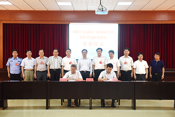 本网讯 6月22日,学校与零陵区人民政府签署合作共建框架协议。校长曾宝成,中共零陵区委副书记、区长吴恢才分别代表学校与零陵区人民政府共同签订协议。