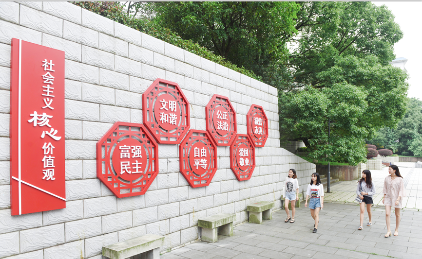 本网讯 为切实推进优秀传统文化育人,使传统文化润物细无声地感染学生。近日,位于学校图书馆东侧的社会主义核心价值观精美地标亮相校园,并以独特的文化氛围和艺术气息引来师生驻足欣赏。