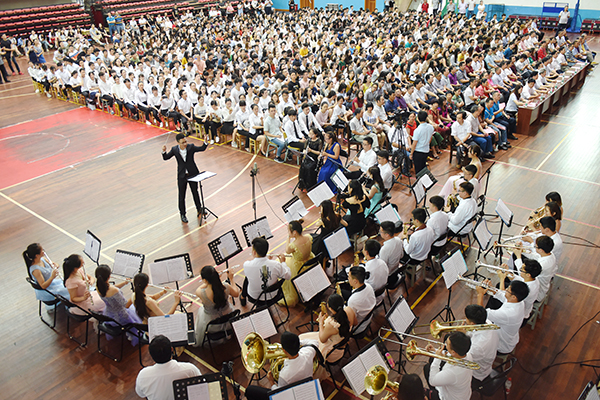 典礼在齐唱校歌声中结束。