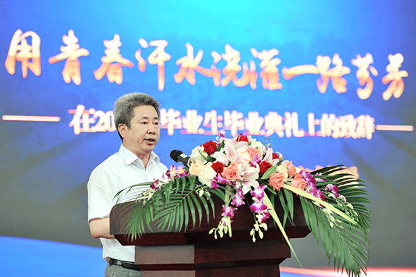 校党委副书记、校长曾宝成代表学校对同学们毕业表示衷心祝贺,并发表了题为《用青春汗水浇灌一路芬芳》的讲话。讲话中,曾宝成饱含深情,用非常朴素的话语寄托了他对这一届毕业生的期望,言辞恳切,发人深省。