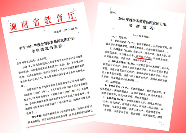 2016年,vwin德赢新闻宣传工作取得了可喜成绩,在省教育厅月度考评通报中每月均位居全省二本院校首位,在中国教育报、湖南日报、新华网、人民网、湖南卫视等国家级、省市级媒体上共发表500余篇外宣报道,对内在校园各大媒体上刊发各类报道2000余条。同时,充分利用微博微信等新媒体平台,宣传学校发展成效、提升办学声誉,积极传播正能量,为学校事业发展鼓劲助力。