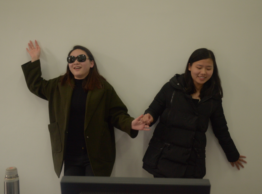 小组同学和胡老师探讨话剧表演中的情景设定和英文表述。