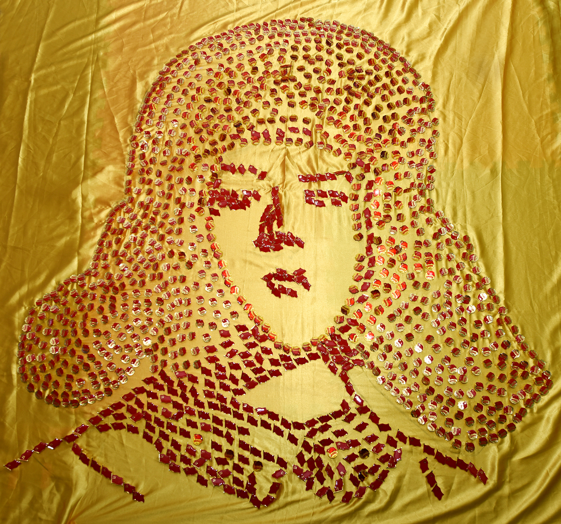 这幅雷锋画像作品由人文学院学生历时一周创作完成。党徽和团徽在金黄的衬面上精心布局,排列整齐,立体感非常强。这幅构思新颖、形式创新、意见非凡的“手绘”作品以崭新的表现形式再现雷锋同志光辉形象,向“两会”和雷锋纪念日献礼。