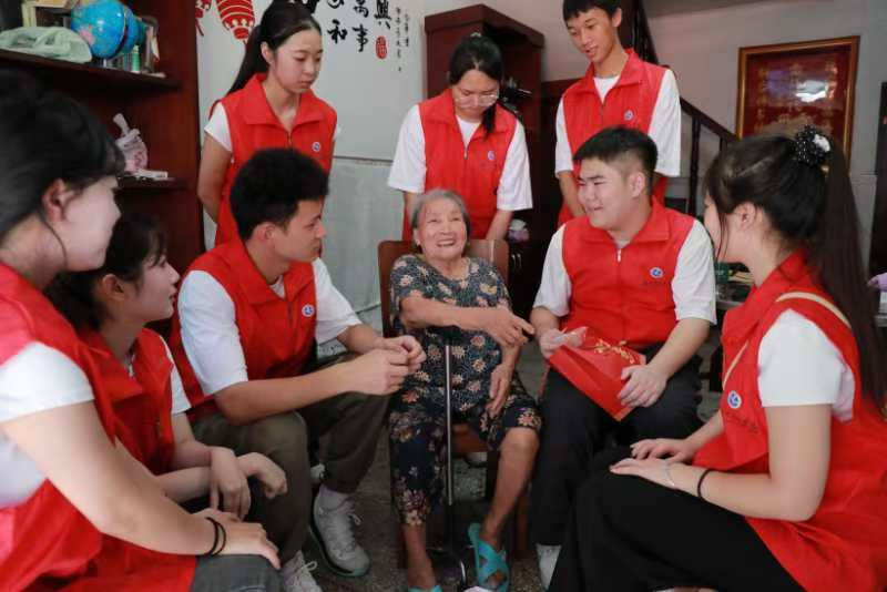 月满星辰,如约而至。该校文法学院的青年志愿者们一同走进中国历史文化街区“柳子街”,看望孤寡老人,与他们一起吃月饼、话中秋,送去温暖和祝福。迄今为止,该校的爱心接力志愿服务活动已经延续了37年。