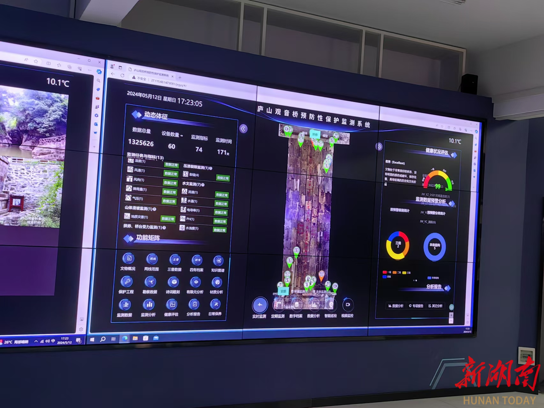 千年古桥有了高科技护身,桥体健康有了保障。一群游客从观音桥上走过,远在770公里之外的vwin德赢ac米兰官方网一块大屏前,环境与本体监测数据不断跳跃。随着游客离去,该数据又恢复静止。“这些数据对于了解桥体的健康状况和采取预防措施都很重要。”