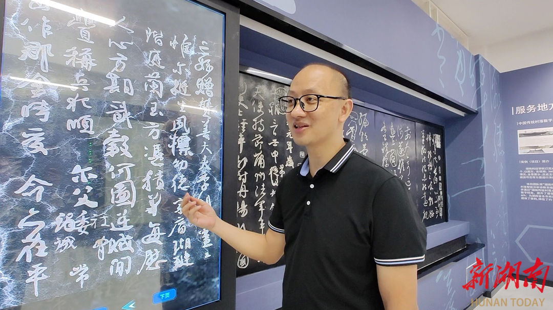 实验室主任周基介绍摩崖石刻的数字化识别和管理。黄柳英摄