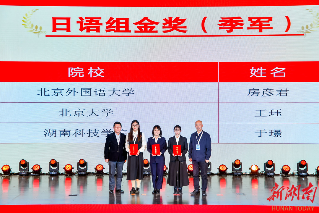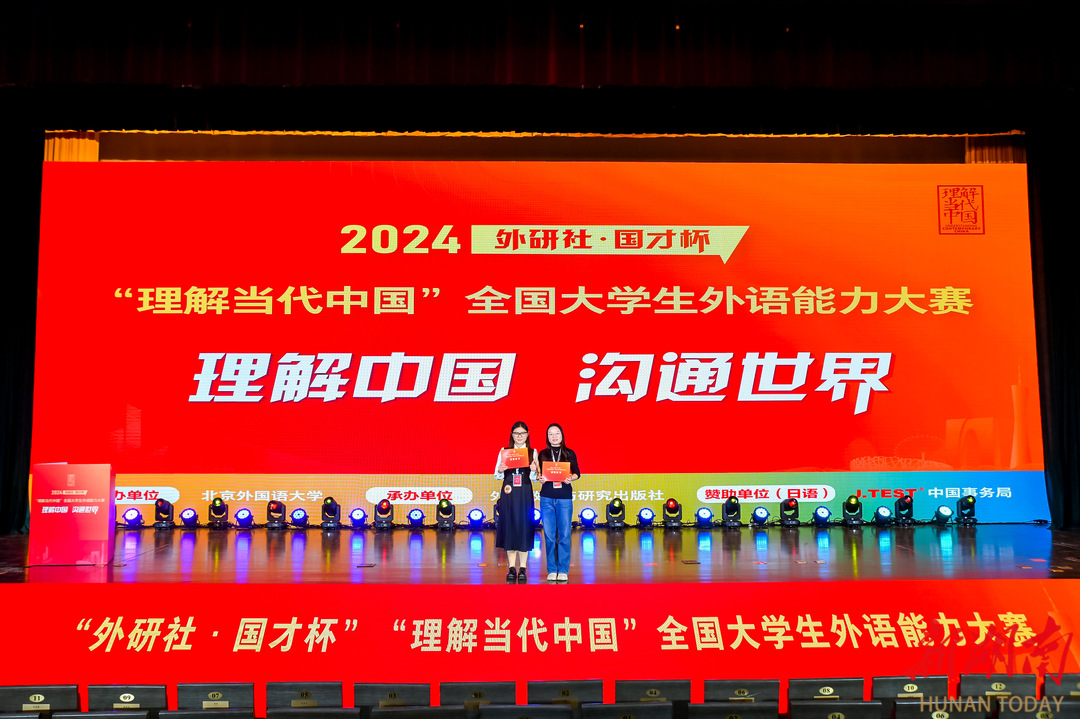 湖南日报·新湖南客户端12月9日讯(通讯员 宋琳 张云芳)12月7日,2024外研社·国才杯“理解当代中国”全国大学生外语能力大赛全国总决赛落幕,vwin德赢ac米兰官方网外国语学院日语专业学生于璟以第6名的成绩,与北京外国语大学、北京大学等高校学子同台荣获日语组赛道的10项金奖。这是该校连续两年在全国大学生外语能力大赛中荣获金奖,2023年英语专业学子游顺钦曾获英语组笔译赛项金奖。