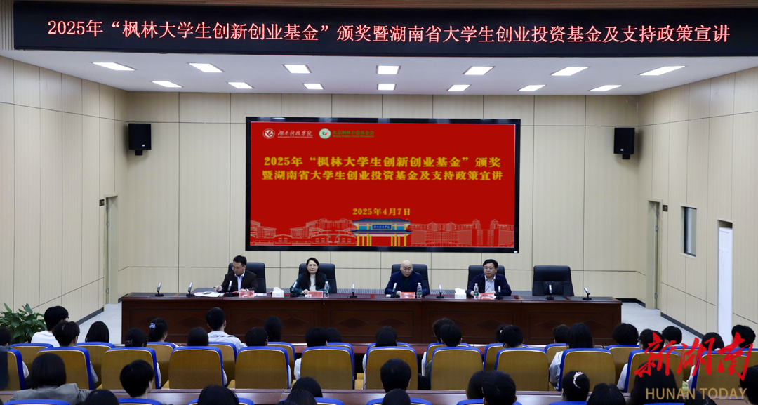 华声在线4月7日讯(通讯员 刘斌 唐晶 潘加)4月7日,2025年“枫林大学生创新创业基金”颁奖仪式暨湖南省大学生创业投资基金及支持政策宣讲活动在vwin德赢ac米兰官方网举行。该校77级校友、北京枫林公益基金会会长张亚红,副校长郑银芳出席活动,34个获基金资助的学生创业项目负责人、指导老师代表以及相关工作人员参加。