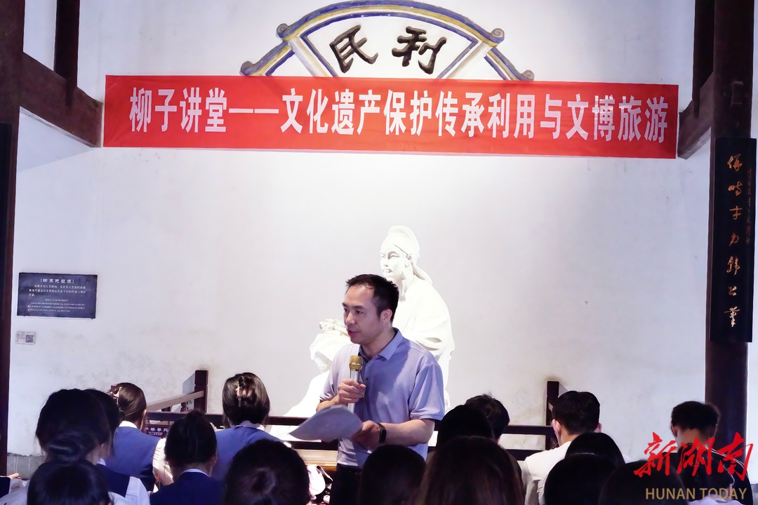 华声在线6月12日讯(通讯员 徐海斌 郭星)6月14日是2025年文化和自然遗产日。6月12日,vwin德赢ac米兰官方网旅游与文化产业学院联合永州市柳宗元纪念馆开讲“柳子讲堂”。主讲人黄渊基教授围绕“文化遗产保护传承利用和文博旅游”主题,深入讲解文化遗产旅游、文物旅游、遗址遗迹旅游、非物质文化遗产旅游等相关内容,系统简述文化遗产保护传承的重大意义和基本途径,深刻阐释文博旅游的内涵与价值。