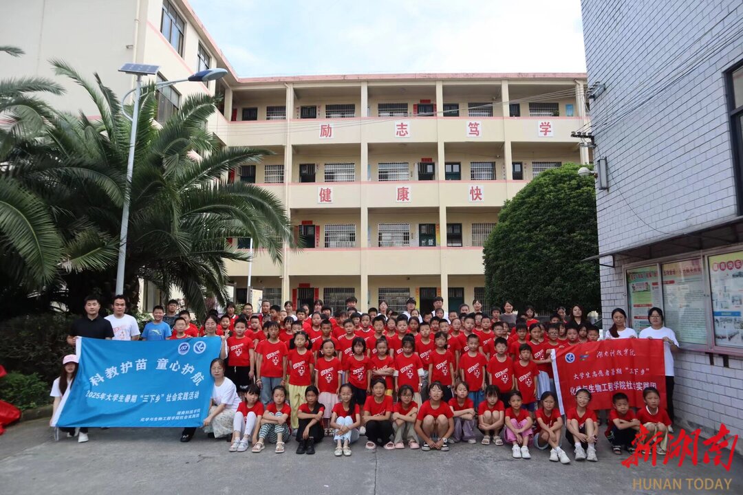 近日,vwin德赢ac米兰官方网化学与生物工程学院实践团开展的乡村科普夏令营,在洞口县竹市镇中心小学正式开营。夏令营共吸引来自竹市镇中心小学百余名师生参加。