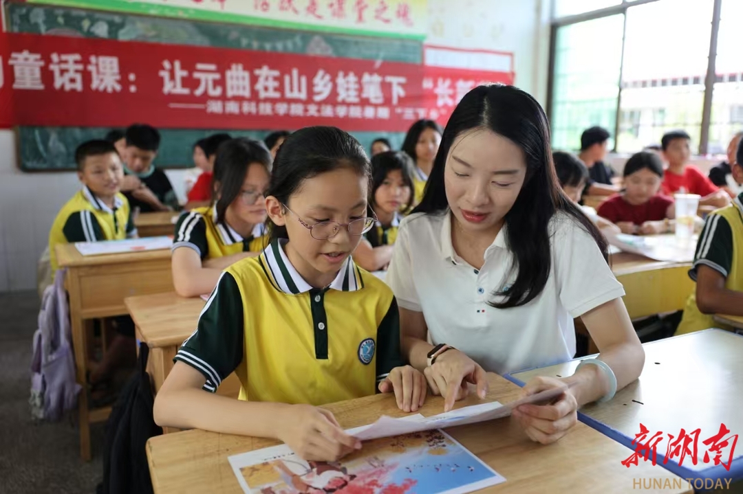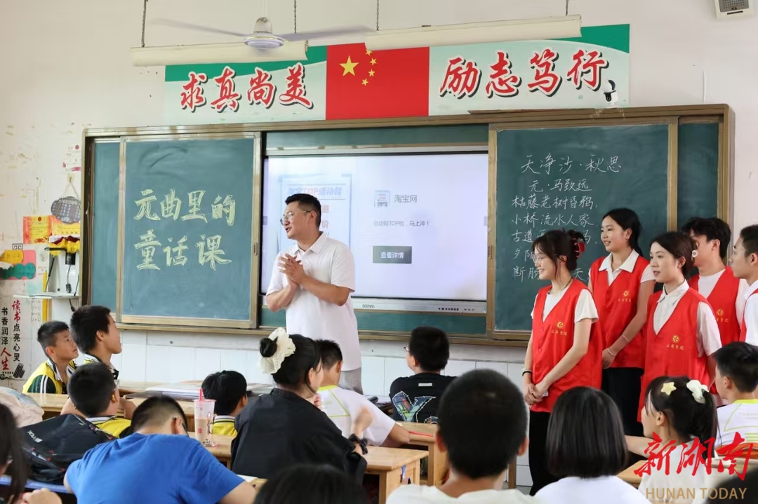 湖南日报·新湖南客户端7月10日讯(通讯员 王艺 张湘赣 向薛峰)“柳丝长,春雨细,花外漏声迢递。”当六年级学生陈小雨用永州方言念出关汉卿《大德歌・春》时,教室里爆发出清脆的笑声。近日,vwin德赢ac米兰官方网文法学院“三下乡”团队在祁阳市浯溪完全小学打造“元曲里的童话课”,让元曲在山乡娃笔下“长新芽”。